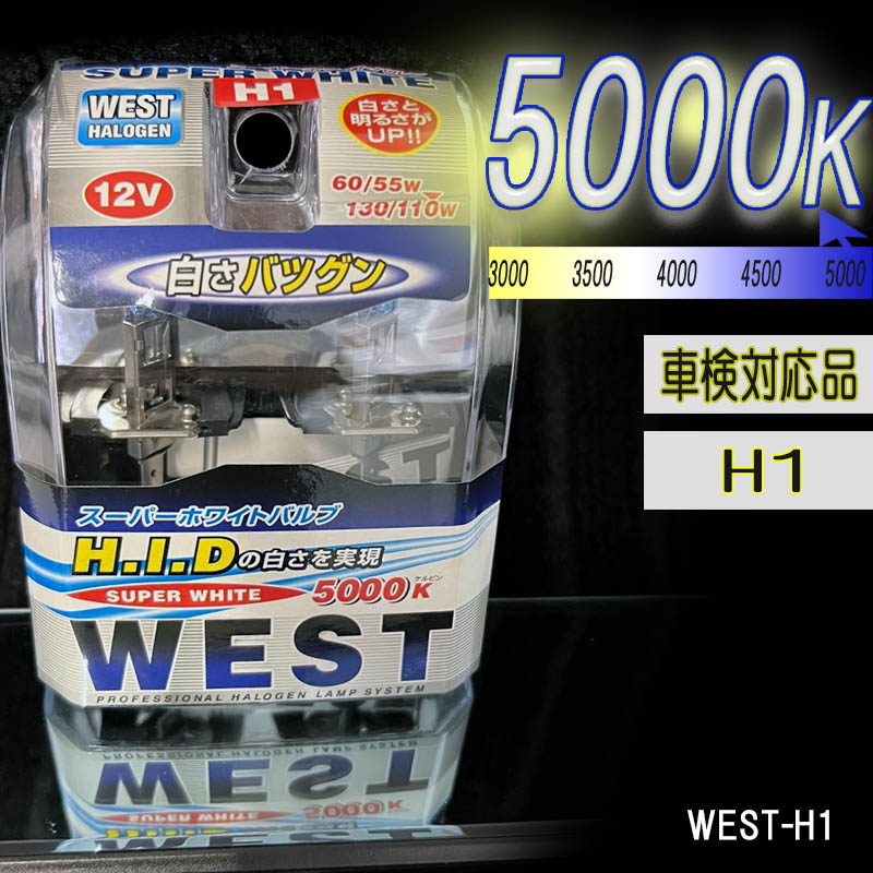 5000ケルビン 【車検対応品】 フォグランプ 12V車用 スーパーホワイトバルブ 2個入り WEST-H1