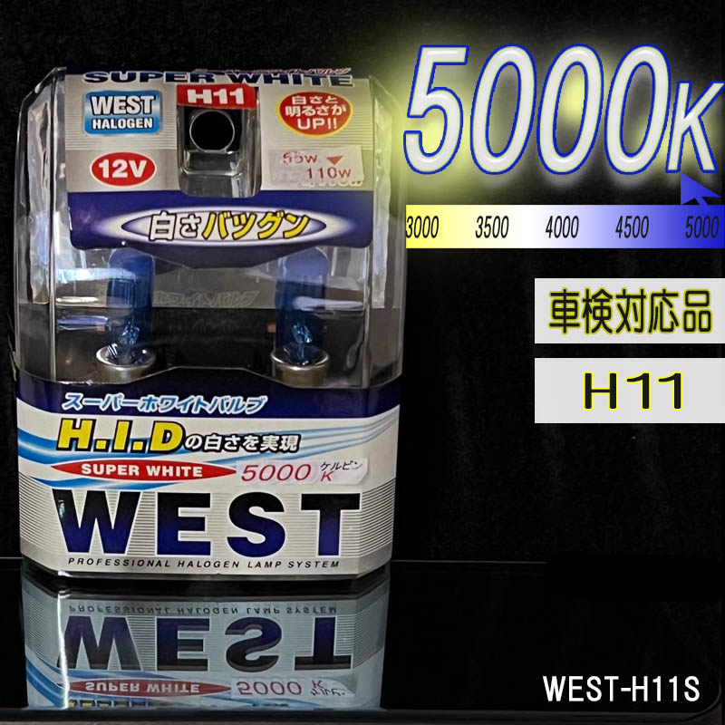 5000ケルビン 【車検対応品】 フォグランプ 12V車用 スーパーホワイトバルブ 2個入り WEST-H11