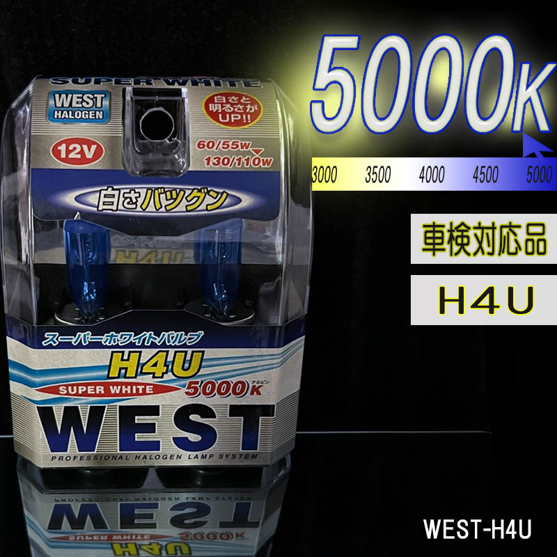 5000ケルビン 【車検対応品】 フォグランプ 12V車用 スーパーホワイトバルブ 2個入り WEST-H4U