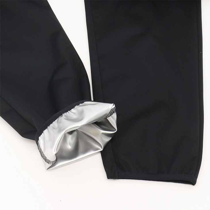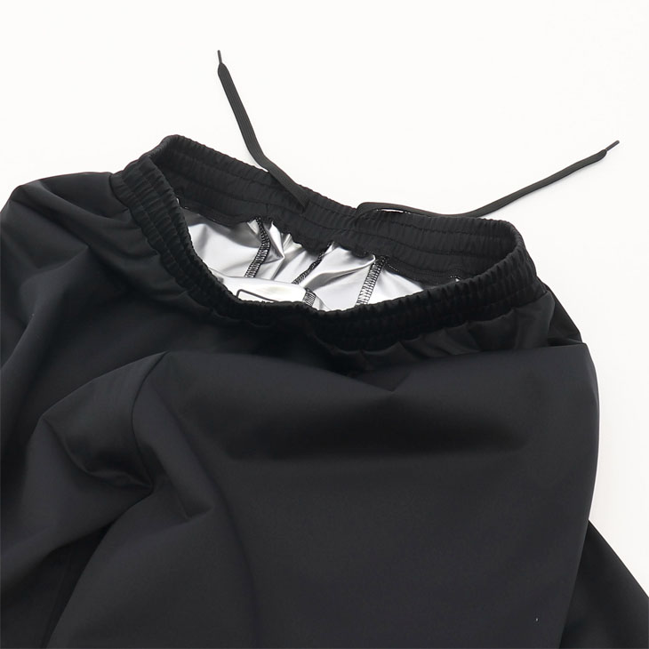 生地内側のラミネート加工で通気を抑え、体内の熱を逃がしにくく設計。