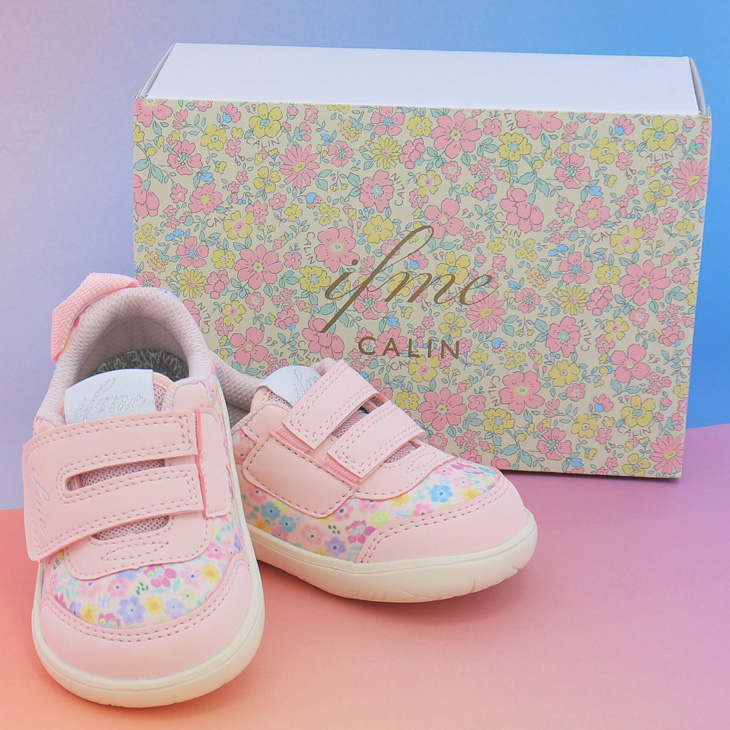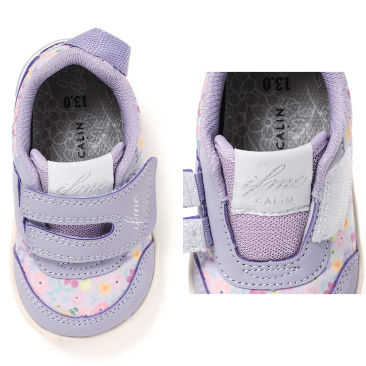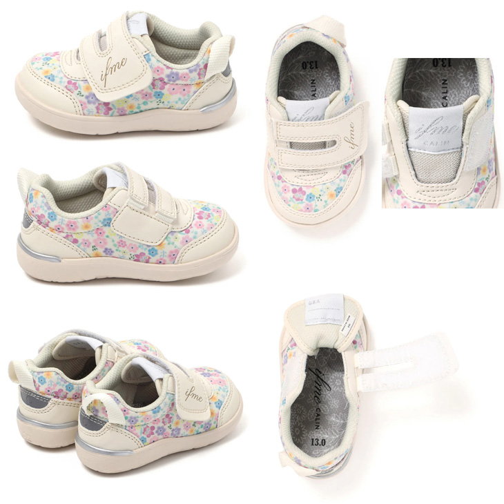 イフミーカラン ベビーシューズ 3E相当 子供靴 12-15cm ifme CALIN 花柄プリントスニーカー ベビー靴 フラワー柄 キッズスニーカー 女児 赤ちゃん /20-5822