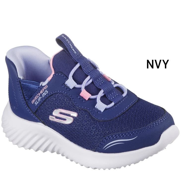 ストレッチレースを配したメッシュと合成素材のアッパー、スケッチャーズ アダプティブクロージャー、