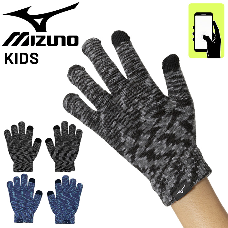 ミズノ ジュニア ニット手袋 タッチパネル対応 MIZUNO キッズ ニットグローブ 保温 防寒手袋 子ども用 スポーツ アクセサリー 伸縮性 のびのび /32JYB904