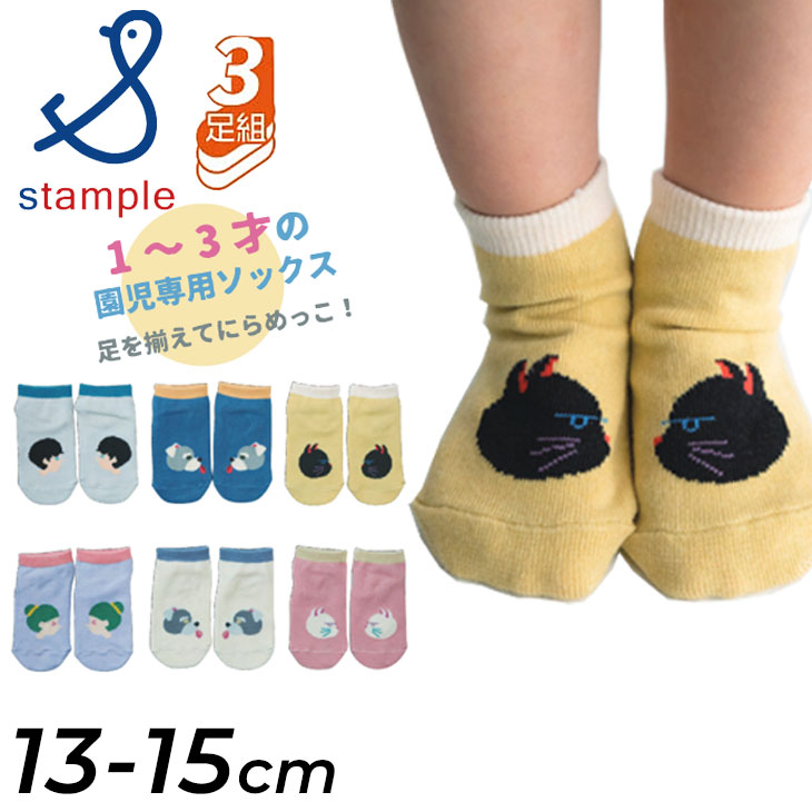 スタンプル ベビーソックス 3足組 靴下 13-15cm stample にらめっこしーましょ ベビー アンクルソックス 3P 男の子 女の子 子ども用 くつした 赤ちゃん /72990