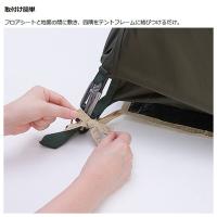 フロアシートと地面の間に敷き、四隅をテントフレームに結びつけるだけの簡単取り付け。