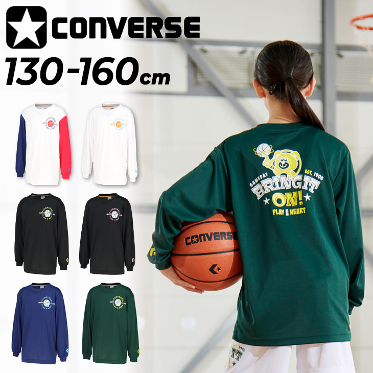 コンバース キッズ ジュニア 長袖Tシャツ 130-160cm 子供服 CONVERSE プリントT バスケットボールウェア ロンT 吸汗速乾 くま バックプリント 子ども /CB452360L