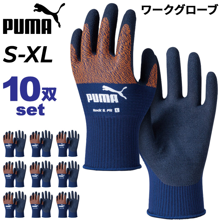 プーマ 作業用手袋 10双1組 メンズ レディース PUMA WORK ロック&フィット 10双セット ワークグローブ ラテックス 天然ゴム グリップ力 男女兼用 /PG-1300set