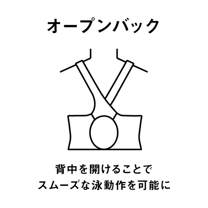 肩紐が大きく開くため着やすく、着用時にはたすき効果でズレにくくなっています。
