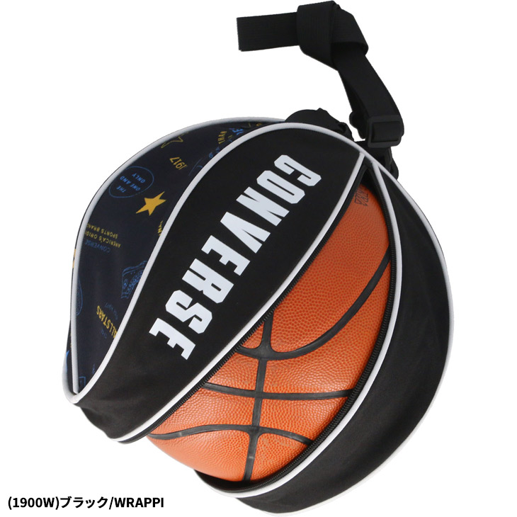コンバース ボールケース 1個入れ CONVERSE バスケットボール7号球対応 バスケ ミニバス ブランド ボール競技 ボール収納バッグ ショルダー付 総柄 /C2501097