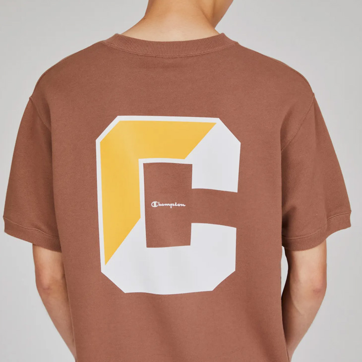 背中には大きな「C」とChampionロゴを組み合わせたグラフィックのプリント入り。