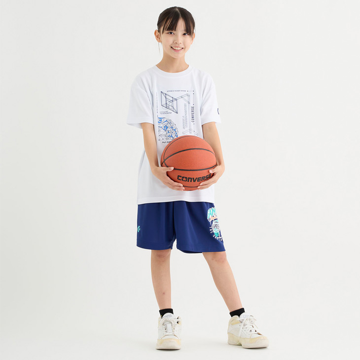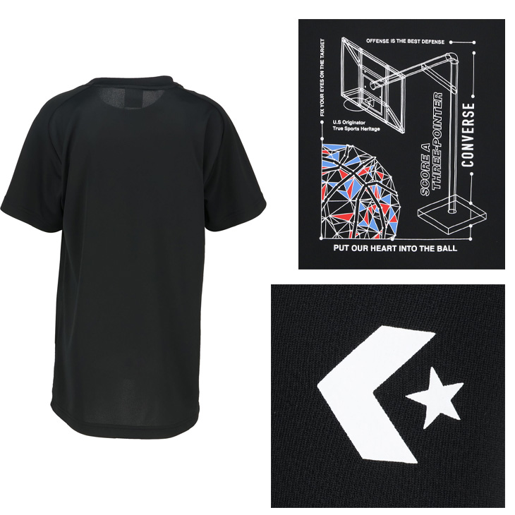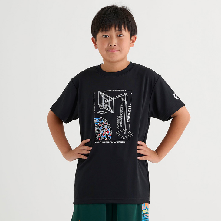 コンバース キッズ ジュニア 半袖シャツ 130-160cm 子供服 CONVERSE プリントTシャツ ミニバス バスケットボールウェア スポーツウエア 吸汗速乾 /CB452352