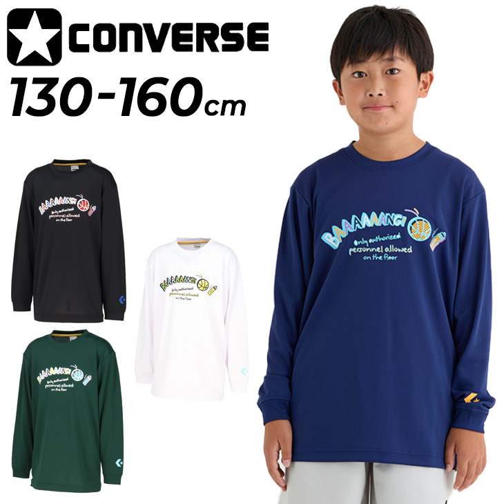 コンバース キッズ ジュニア 長袖Tシャツ 130-160cm 子供服 CONVERSE プリントT バスケットボールウェア ミニバス 吸汗速乾 子ども用 男の子 女の子 /CB452358L