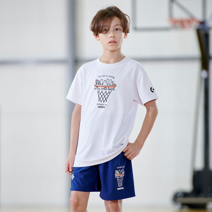 コンバース キッズ ジュニア 半袖シャツ 130-160cm 子供服 CONVERSE プリントTシャツ バスケットボールウェア ミニバス スポーツウエア 吸汗速乾 /CB461351
