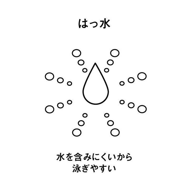 安心感のある地厚な生地で塩素に強く長持ちし、はっ水加工でシャープな水切れが特徴です。