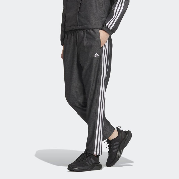 このアディダスのパンツは、厳しい天候の日でも活動的に過ごすための機能性を備えている。