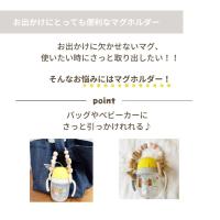 お出掛けの時にバックにつけたり、ベビーカーにかけたりしておくことで、 バックの中からマグを探す手間も省けます!
