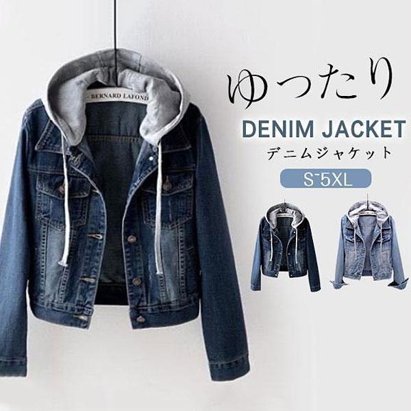 デニムジャケット ジャンパー レディース Gジャン アウター コート 秋 カジュアル フード付き オシャレ 長袖 スリム 大きいサイズ 羽織り