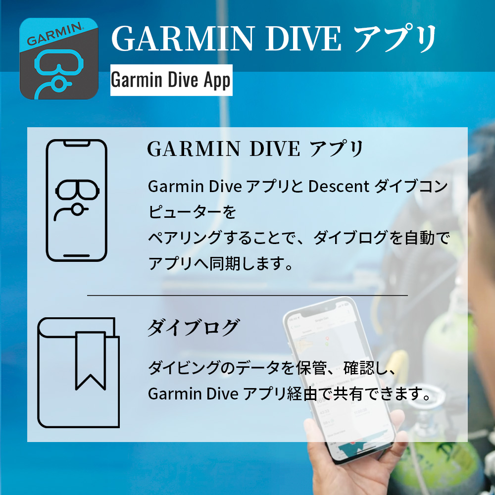 | Garmin Connectアプリによるリアルタイム設定同期 | ◯(Garmin Dive アプリとの同期にも対応) |