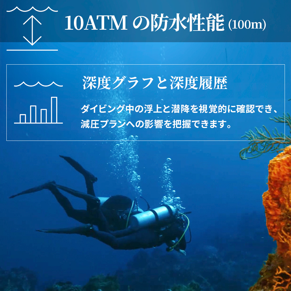 | 減圧ロックアウト | ◯(ユーザーの同意の上ダイビング前に無効にすることができます) |