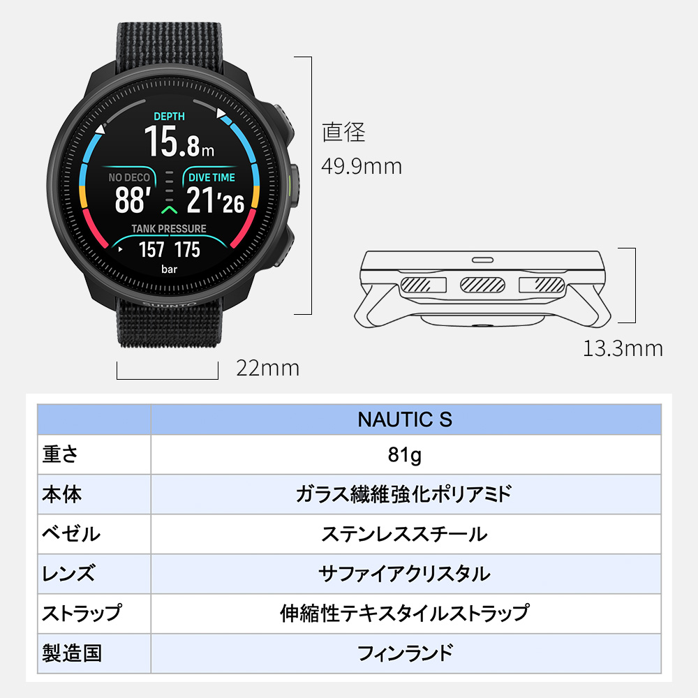 Suuntoが提案する最新のウォッチタイプダイブコンピューター「Suunto Nautic S」は、初心者から経験者まで幅広いダイバーをサポートする次世代モデルです。 |