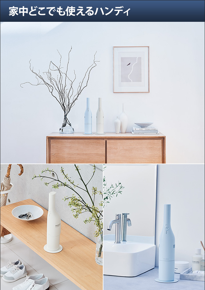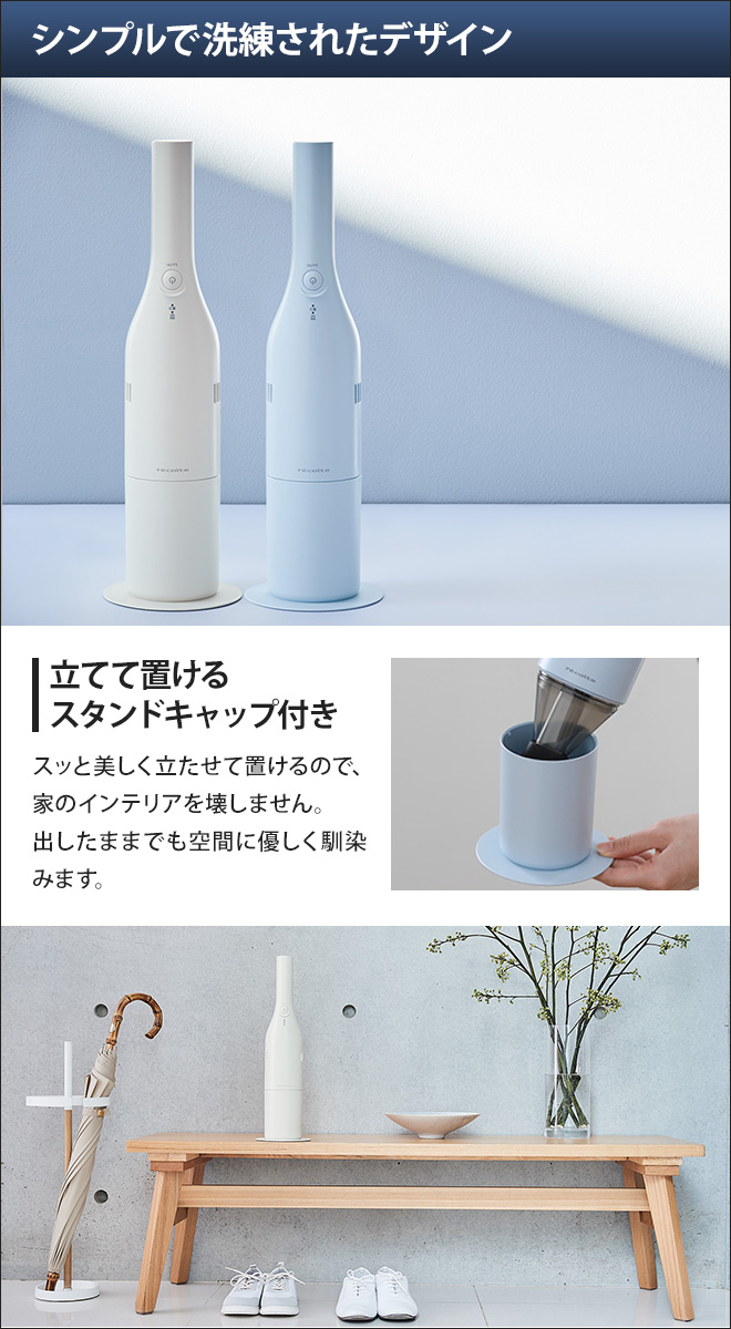 お部屋に立てて置きたいデザインだから、取り出す手間もなく億劫な掃除もサッとできます。手軽にゴミも液体も吸いたい方におすすめです。