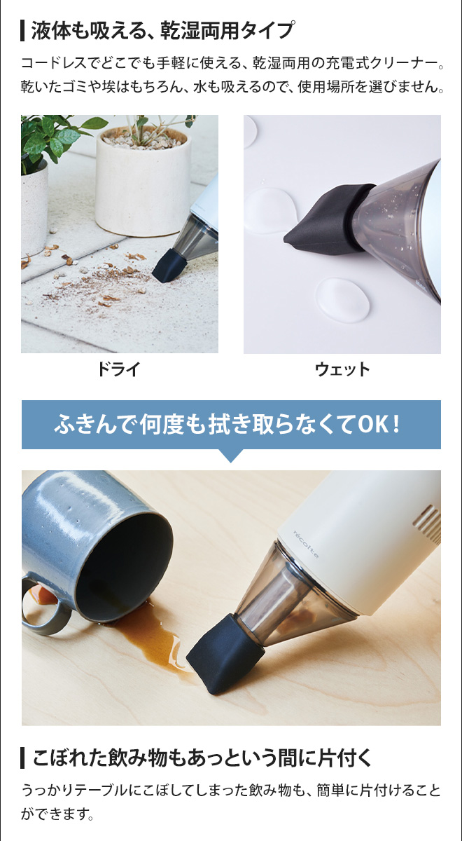 クリーナー ハンディクリーナー コードレス掃除機 乾湿両用 おしゃれ 軽い コードレス 充電