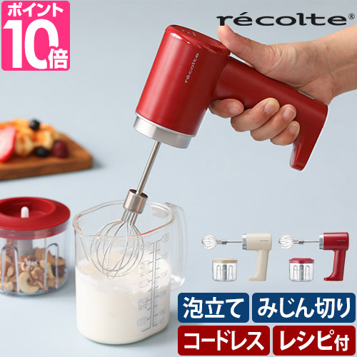 泡立て・撹拌・みじん切りと、1台3役の「recolte コードレス ホイップ&チョッパー」。生クリームや卵白の泡立てから、にんにくやしょうがなどの薬味のみじん切りがアッという間に完成!充電式のコードレスだから、使いたい時にサッと使える手軽さが魅力。計量カップのまま泡立てできるミニサイズで、重量は約300gと超軽量。家電と調理道具をミックスした新感覚アイテムです。