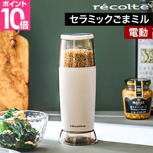 「recolte電動ゴマスリ」は、出しっぱなしでもお部屋やキッチンに馴染むおしゃれなデザインのごますり器。ボタン一つで香り立つ挽きたてのごまをお届けします。スープや和え物、スイーツのトッピングなど、様々な料理に風味をプラス。栄養豊富で健康や美容に良いと人気なごまを毎日手軽に楽しめます。