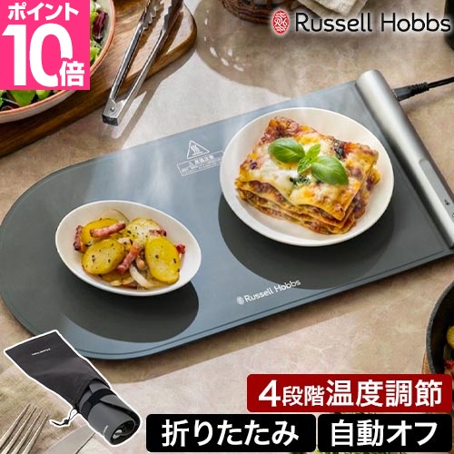 家族の時間差ごはんや、フードデリバリー、ゆっくり食事を楽しみたいときに!「Russell Hobbs フードウォーマーパッド」は広げて保温、丸めて収納できる卓上食品保温プレート。惣菜、ごはん、鍋など、料理が冷めないように保温が可能です。タッチパネル操作で、料理に応じて選べる4段階の温度設定。プレートはシリコン製でお手入れも簡単。3時間で自動電源オフ付きで安心です。