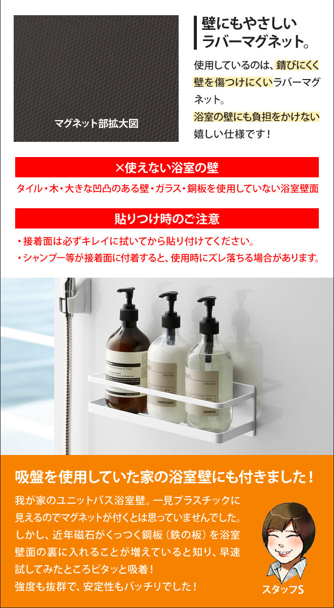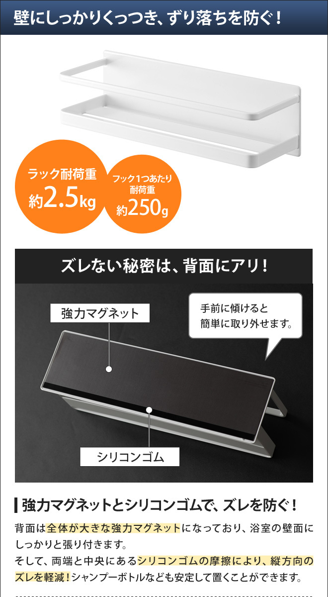 マグネットバスルームラックワイドの特徴