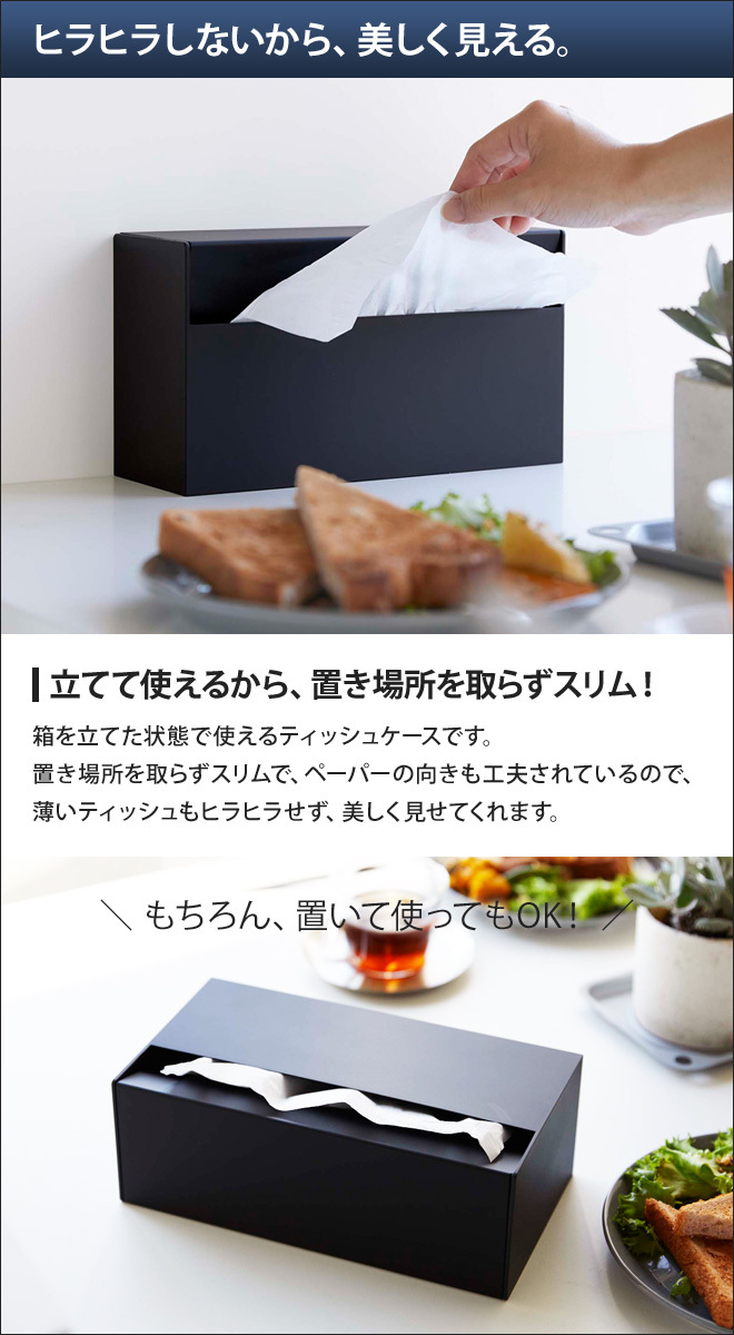 | 対応サイズ | 約幅23.5×高さ7×奥行き12(cm)以内のボックス・袋入りティッシュペーパー、キッチンペーパー、ペーパータオルなど |