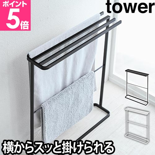 シンプルデザインかつ機能的なアイテムを数多く送り出しているtowerから、スリムなバスタオルハンガーが登場。横から掛けられるので、洗濯機横に設置しても使いやすく、デッドスペースを有効活用できます。また、上から掛けるよりも狙いを定めやすく、掛けやすい!スリムで省スペースなのにバスタオル4枚とバスマットまで掛けられるので、狭い洗面室にもおすすめですよ。