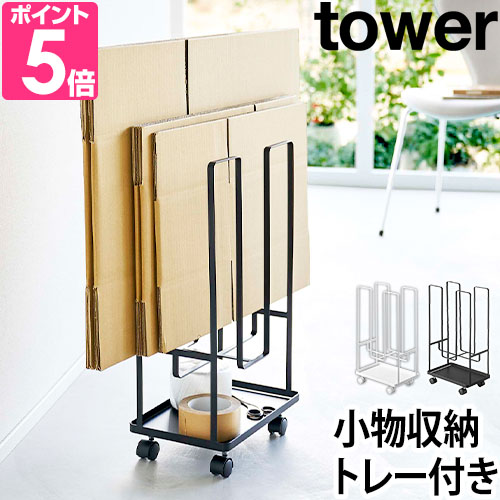 山崎実業 タワー ストッカー 段ボールラック ワゴン スタンド ラック 玄関 キャスター付き 北欧 棚