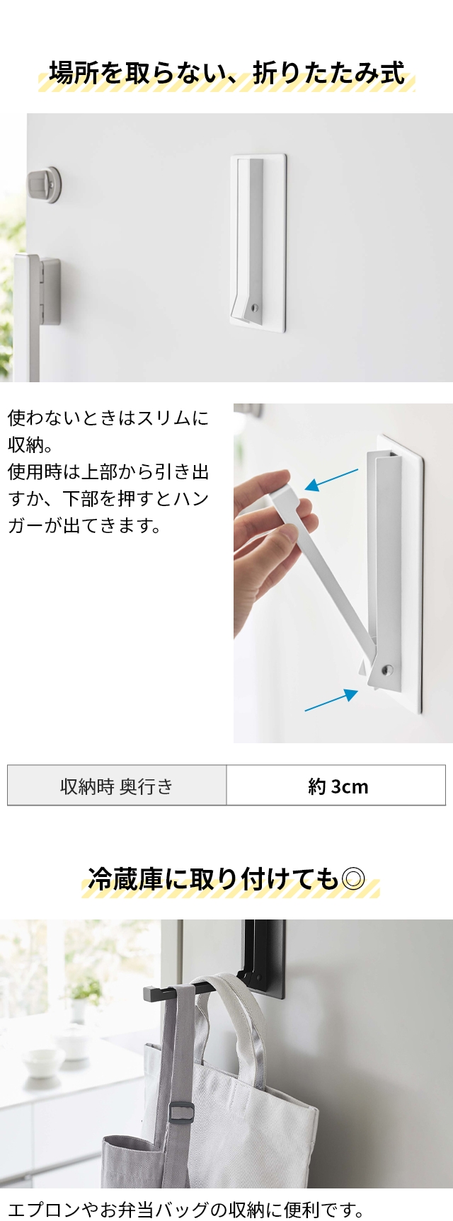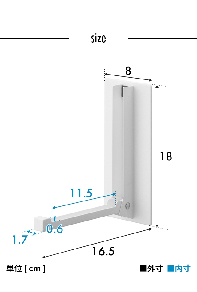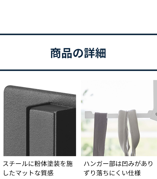 | サイズ | [使用時外寸]約幅8×奥行き16.5×高さ18(cm) [収納時外寸]約幅8×奥行き3×高さ18(cm) [ハンガー部内寸]約幅1.7×奥行き11.5×高さ0.6(cm) |