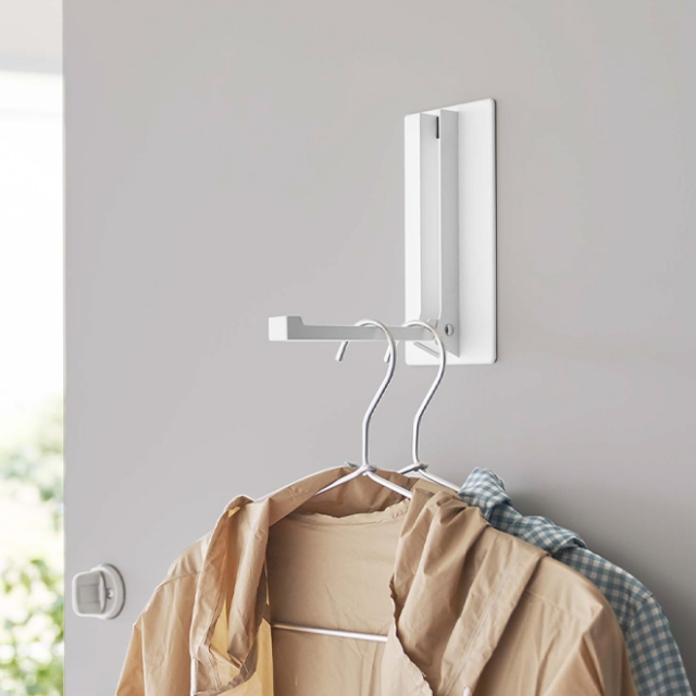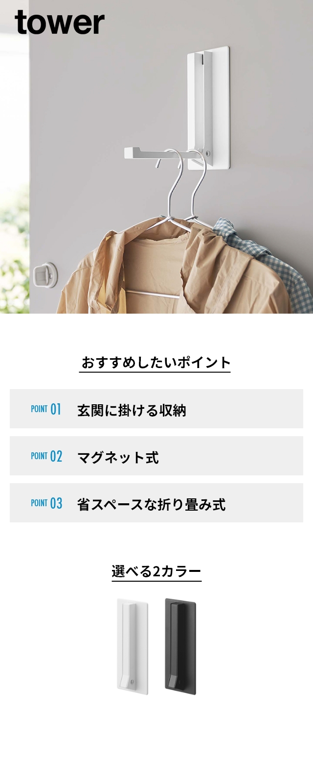 「tower マグネット折り畳みハンガー」は、玄関扉に掛ける収納が作れるハンガー。