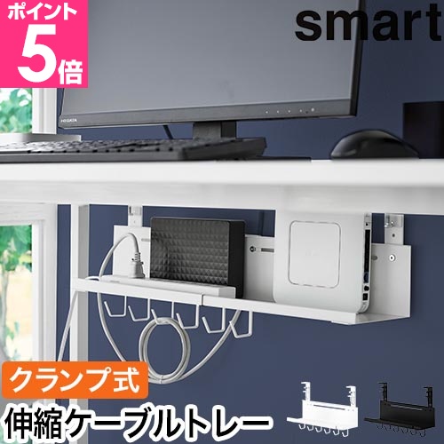 デスク周りでごちゃごちゃしがちなケーブルやルーターを浮かせてすっきり収納できる「smart 伸縮デスク下ケーブルトレー」。伸縮式だからデスクや機器の幅に合わせて自由に調節できます。前面が大きく開いたトレータイプだから設置後のセッティングも楽々!配線の向きを気にする必要もありません。