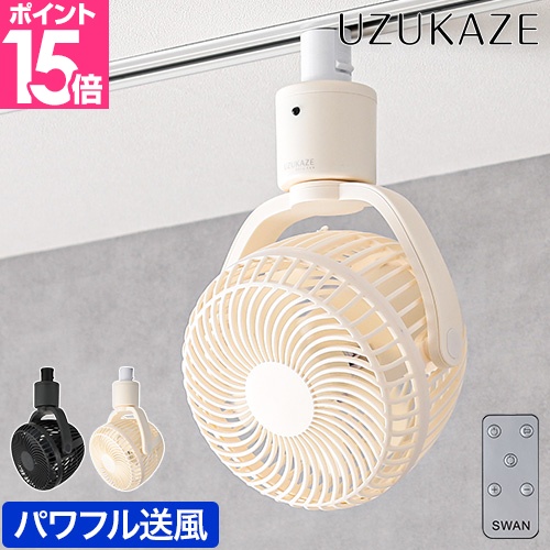 工事不要でダクトレールにワンタッチの取り付けができるシーリングファン「UZUKAZE(ウズカゼ) レールファン」。扇風機やサーキュレーターに近い形で、コンパクトなのにパワフルに送風できます。リビングはもちろん、キッチンや脱衣所、オフィスなどの空気循環に最適。風量調節6段階、左右に120°の自動首振りに対応します。リモコンつきで操作も簡単です。