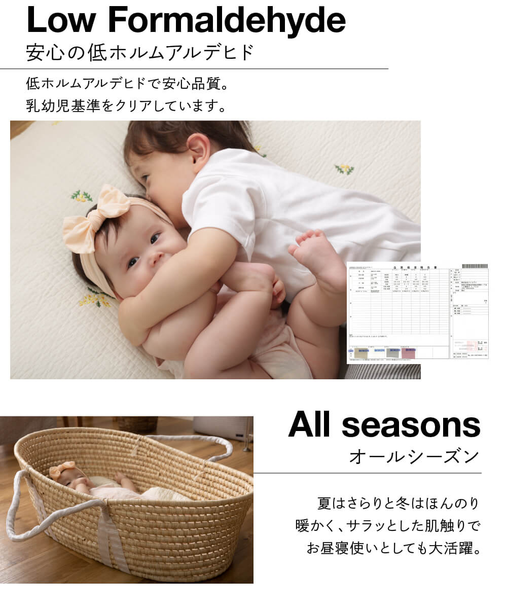 まくらと抱っこふとんは綿100%使用で、肌にやさしい触り心地。