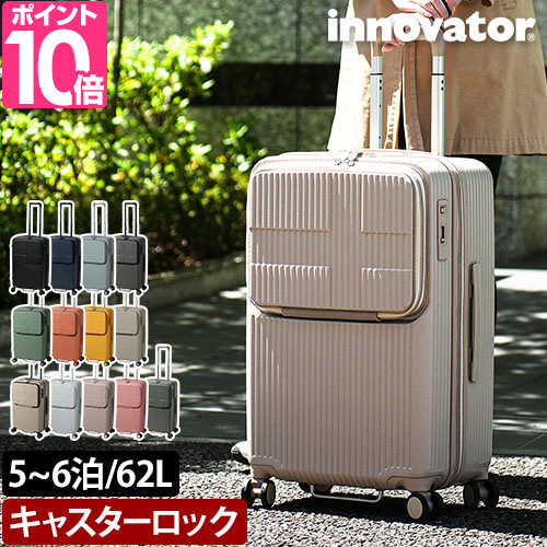 innovator ハードジップキャリー 62L は、スウェーデンの国旗モチーフデザインがおしゃれな大容量のスーツケース。フロントオープンで13インチのPCなども収納でき、旅行や出張に◎。360度スムーズに動く静音のキャスター+軽量だから移動もらくらく。立ったままキャスターストッパーもかけられます。TSAロックも搭載し、ダイヤル式なので鍵をなくすこともありません。