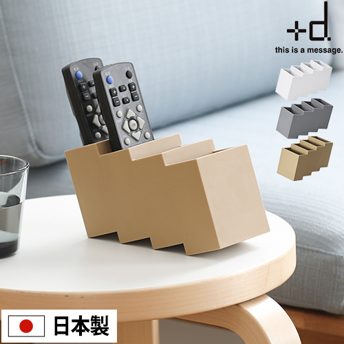 ちょっぴり愛嬌のあるジグザグフォルムの「+d リモココ」。家の中で見失いがちなリモコンを、コンパクトに収納します。見た目にも美しい傾斜デザインは、リモコンが倒れにくく出し入れしやすい絶妙な角度。落としても割れない柔らか素材で、テーブルを傷つけず、水洗いも可能です。リモコンラック以外にも、玄関で鍵や印鑑収納、デスクで文房具や名刺収納に活用できます。