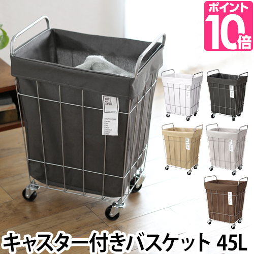 ランドリーバスケット 洗濯かご 45L スクエア キャスター付き 収納 おしゃれ