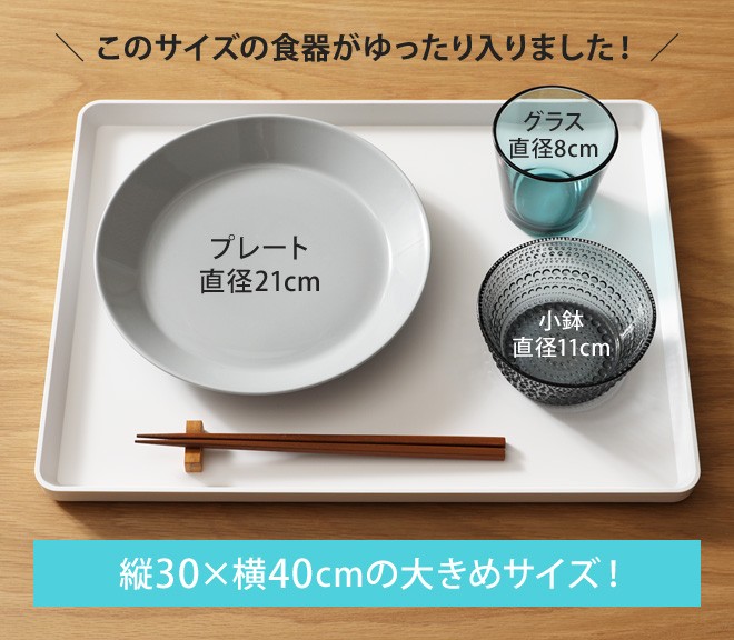 シンプルなトレーなので、配膳以外にも様々な用途に使えそうなのもポイントです。