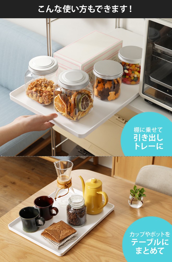棚に乗せて引き出しトレーとして使ったり、テーブルの上にカトラリーやティーカップなどをまとめて置くのも便利!もちろん、ランチョンマット代わりに使ったりと、幅広い用途にご使用いただけます。
