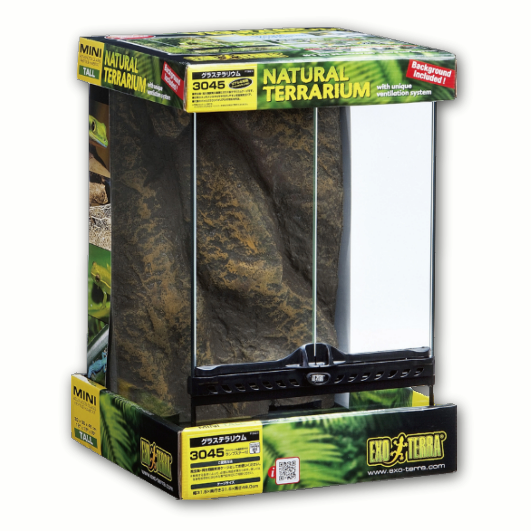 爬虫類・両性類飼育に最適なガラス製テラリウムケージです。ヨーロッパ仕様の機能的でデザイン性に優れた爬虫類・両生類飼育に理想的なケージです。日常のメンテナンスやエサやりがしやすい前面開閉式ドア。付属のバックグラウンドがリアルの岩肌を再現。●メンテナンスがしやすい、大きく開く前面扉●生体の脱走を防ぐロック機能付き。●トップカバーはメッシュタイプで通気性抜群