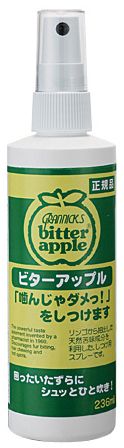 いたずらされて困る場所に塗布することでいたずらを防止。スプレータイプ。犬にいたずらされて困る場所にスプレーすることで、犬のいたずらを防止します。リンゴから抽出した苦味成分が、犬に苦味を覚えさせます。