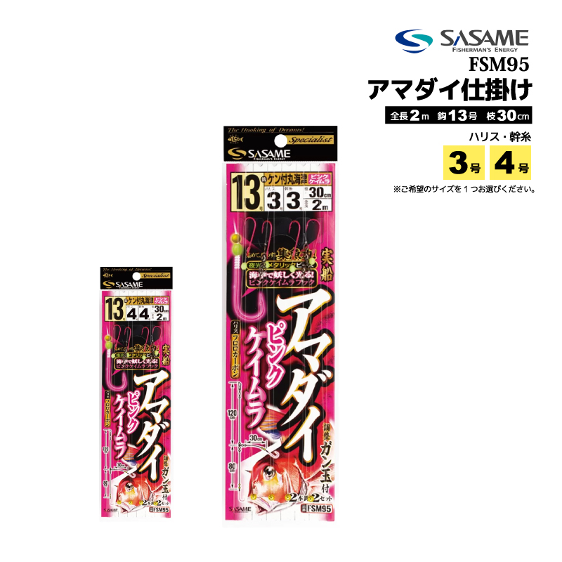 船仕掛 釣り 実船 アマダイ ピンクケイムラ FSM95 全長2m 鈎13号 フロロカーボン ガン玉2個付 鬼カサゴ フィッシング ささめ針 SASAME
