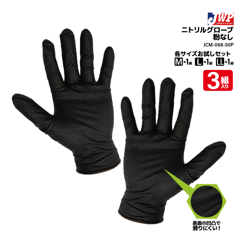 強力 ニトリル ディスポ グローブ 粉なし サイズお試し 3組入 釣り 表面凸凹 フィッシング JCM-068-50P ジェイワークスプランニング