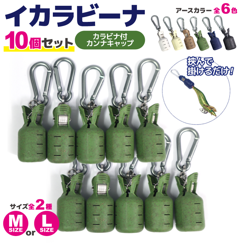 イカラビーナ アースカラー 10個セット カラビナ付 エギケース 釣り エギホルダー カンナカバーエギ針 安全カバー アオリイカ エギング ナカジマ NAKAZIMA