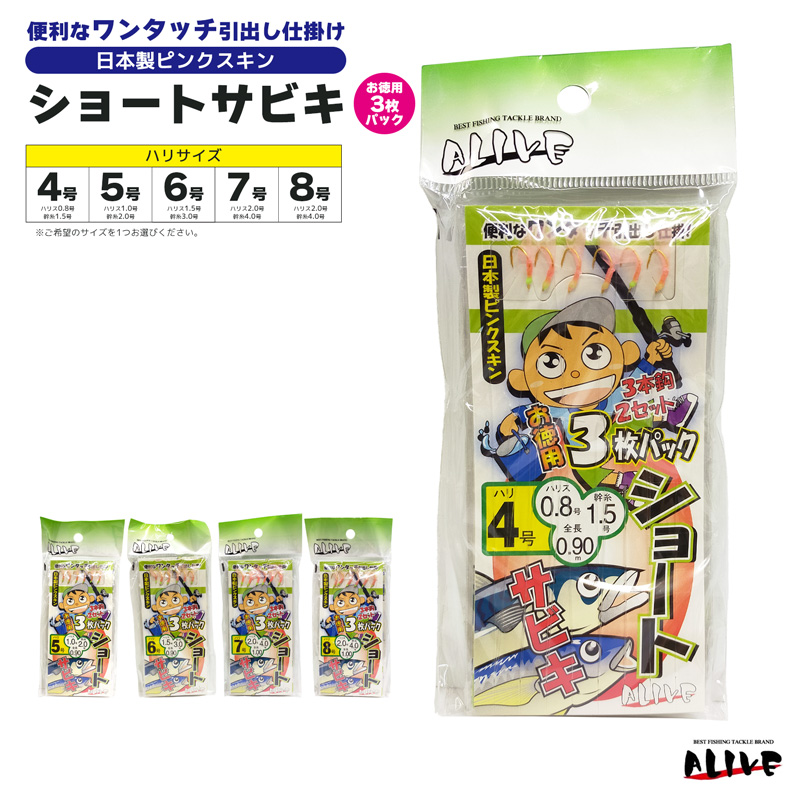 サビキ仕掛 ショートサビキ 釣り ワンタッチ引出し仕掛け 日本製ピンクスキン サビキ釣り ALIVE