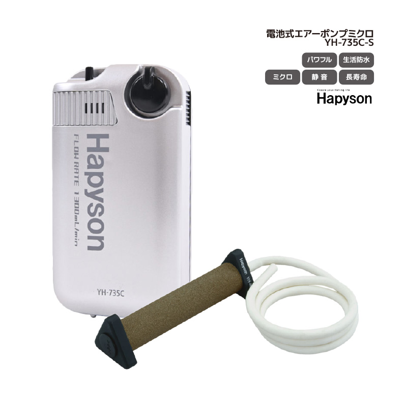 電池式 エアーポンプミクロ METALLIC COLOR YH-735C-S Hapyson 山田電機工業 釣り フィッシング